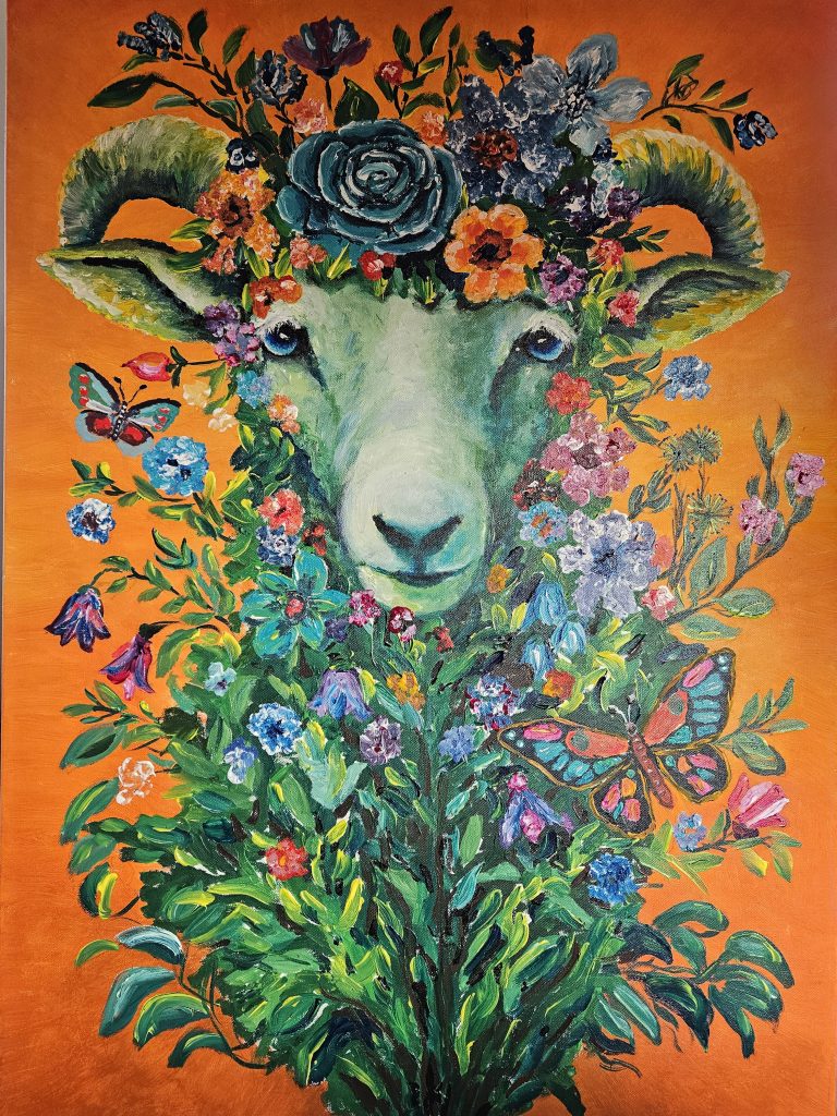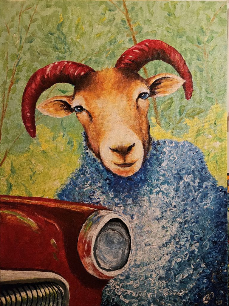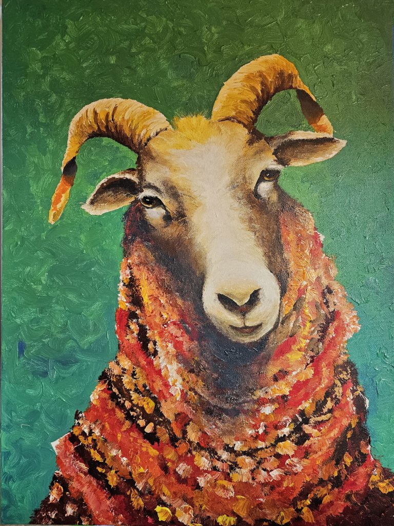 Seit 2018 male ich unsere Schafe auf Leinwand, sozusagen in memoriam. Ich male sie so wie ich mich an sie erinnere, mit ihren Eigenheiten und Macken, in ihren Farben und Posen und ja, in ihrer Individualität. So leben sie weiter in meiner Erinnerung und ich kann sie anderen zeigen, ohne jedesmal provokante Sätze sagen oder schreiben zu müssen.