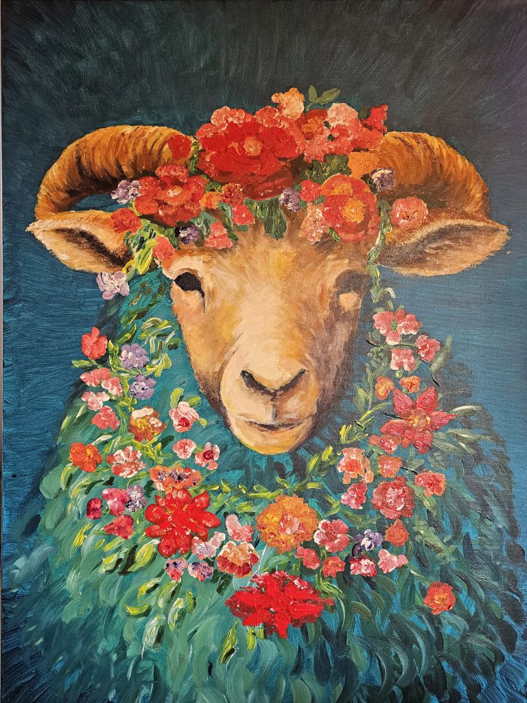 Manchmal aber ist es einfacher, sie zu malen. Seit 2018 male ich unsere Schafe auf Leinwand, sozusagen in memoriam. Ich male sie so wie ich mich an sie erinnere, mit ihren Eigenheiten und Macken, in ihren Farben und Posen und ja, in ihrer Individualität. So leben sie weiter in meiner Erinnerung und ich kann sie anderen zeigen, ohne jedesmal provokante Sätze sagen oder schreiben zu müssen.