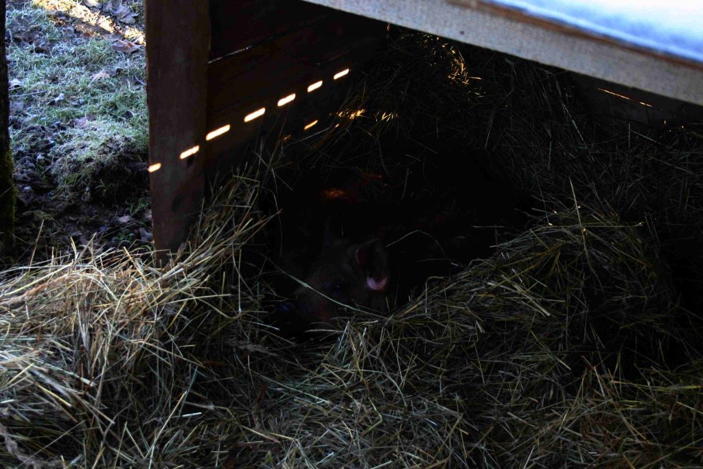 Wir trugen die Randalierer in ihr neues Zuhause und sahen zu, wie sie das Gelände erkundeten. Ein spitzes Quieken quittierte den ersten Kontakt mit dem Strom, aber bald wühlten sie sich ins Stroh und blieben für die nächsten Stunden verschwunden.
